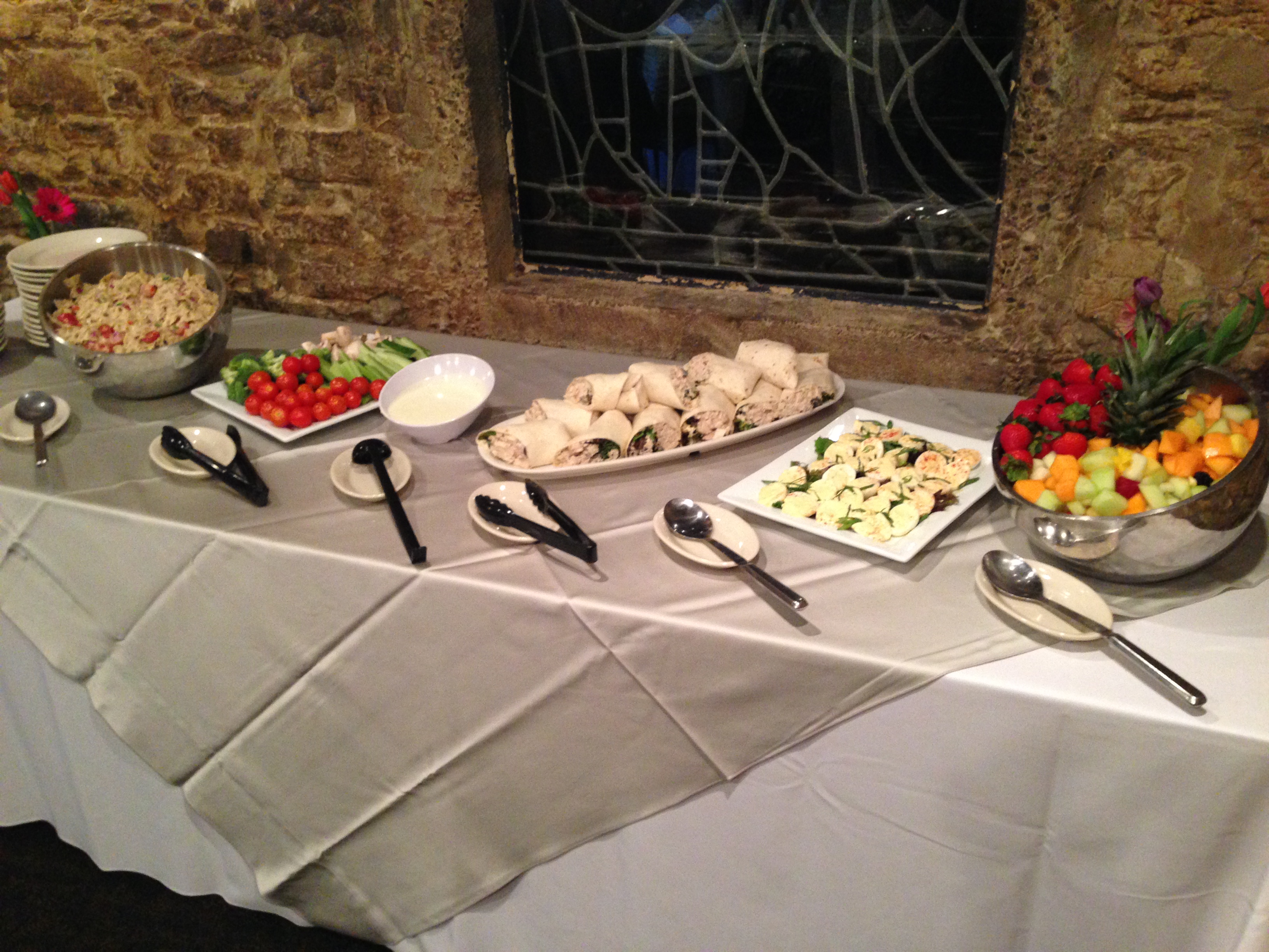 For food, I chose the “shower buffet” option which included chicken salad wraps, pasta salad, veggies and ranch, fruit, and deviled eggs.