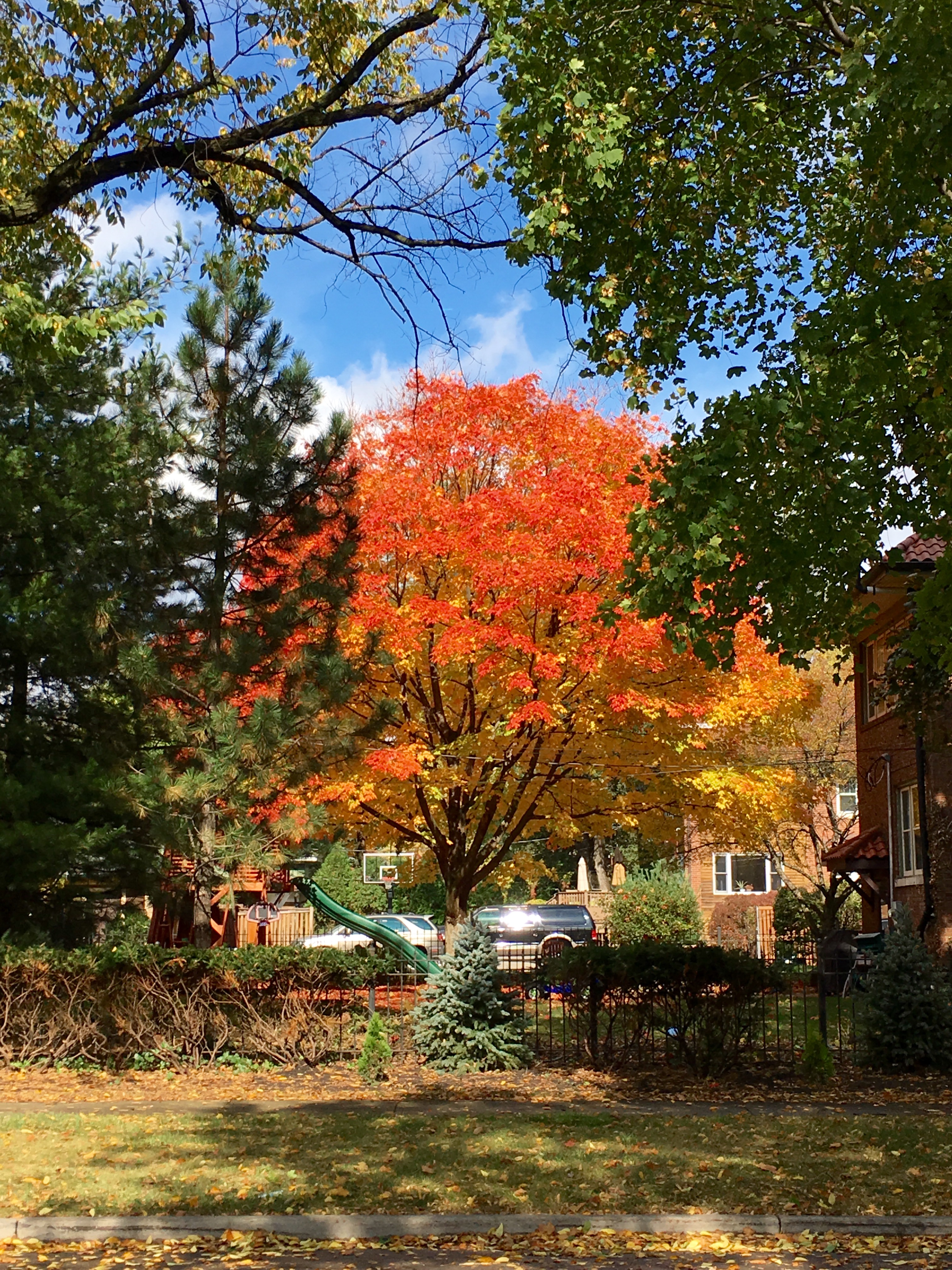 After breakfast the rain let up and the sun came out for just enough time to take a long morning/afternoon walk. We ended up walking 5 miles just exploring our neighborhood and saw so many beautiful fall colors!