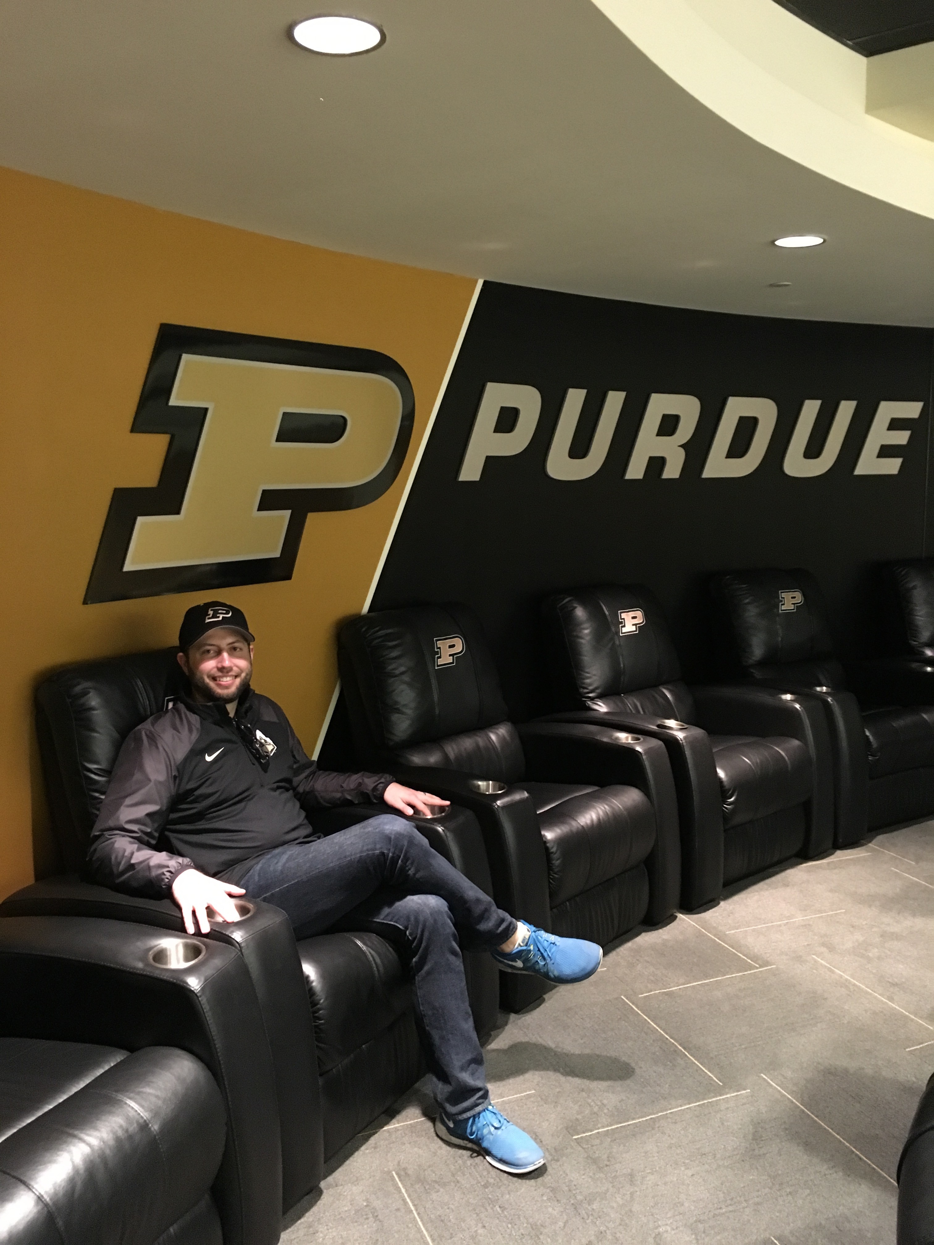 We did a little more tailgating after the game and then Kevin, Sean, and I went on a “behind the scenes” tour of Mackey Arena thanks to Mandy’s cousin Jason. You guys, Kevin was in Purdue basketball heaven! He was like a kid in a candy shop and could not stop smiling. Basically all of my pictures are of him. Here he is in the locker room: